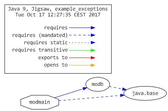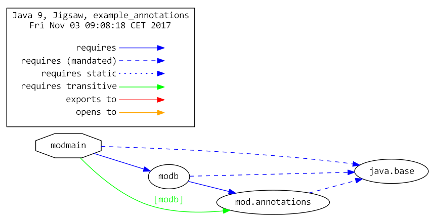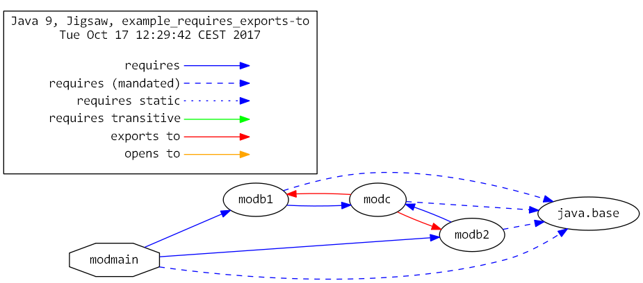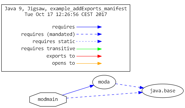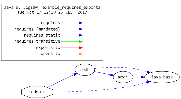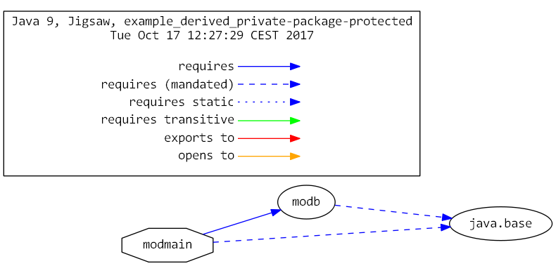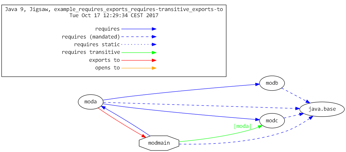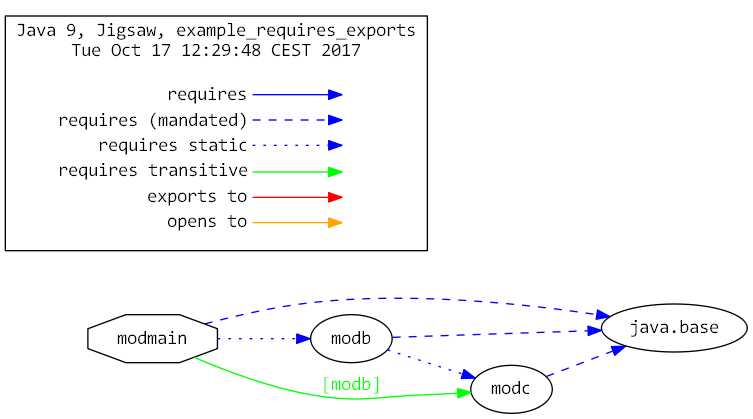 How does requires, requires transitive and qualified exports look like? Relates to all other examples in this section. |