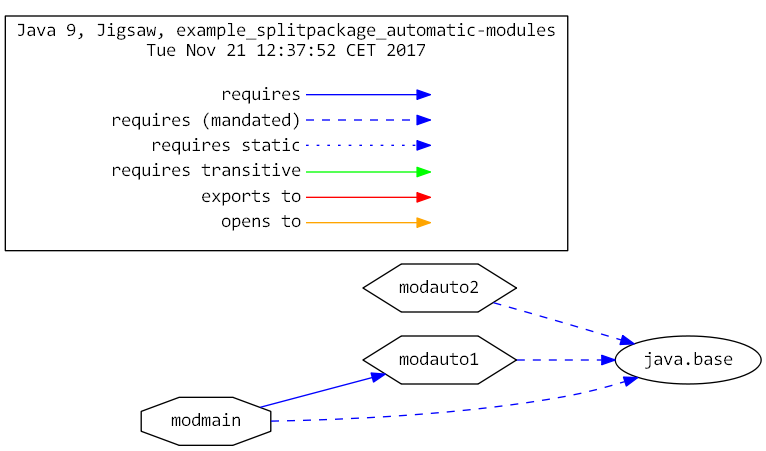 What happens when one Automatic Module automatically reads all other Automatic Modules on the module path and hence creates an unwanted split package problem? Related examples: automatic-module-logging and all other examples in this section. |